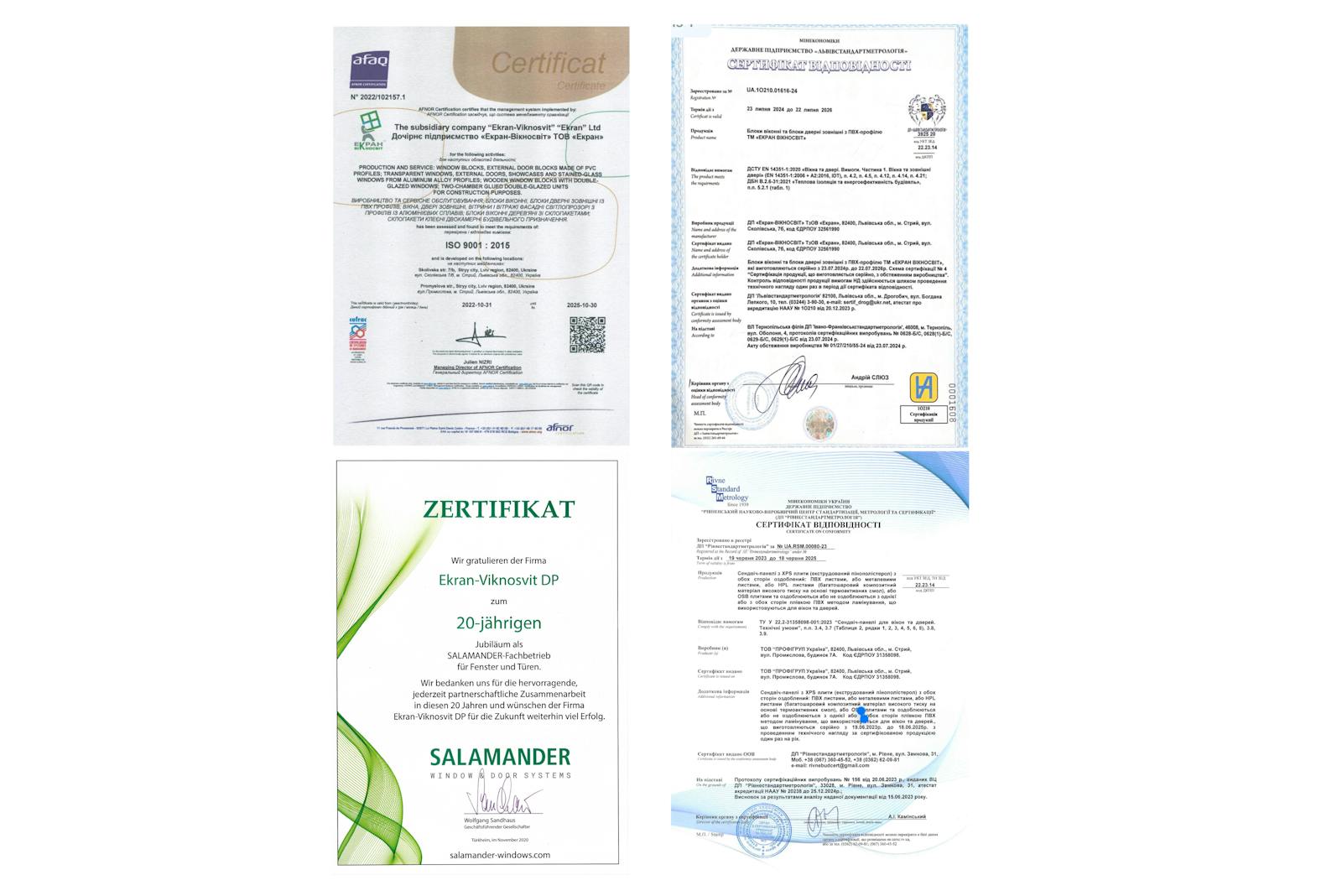 Частина віконно-дверних конструкцій виготовлена у німецькій металопластиковій профільній системі Salamander BluEvolution 73, а частина у нашій брендові системі Ekran Maxima