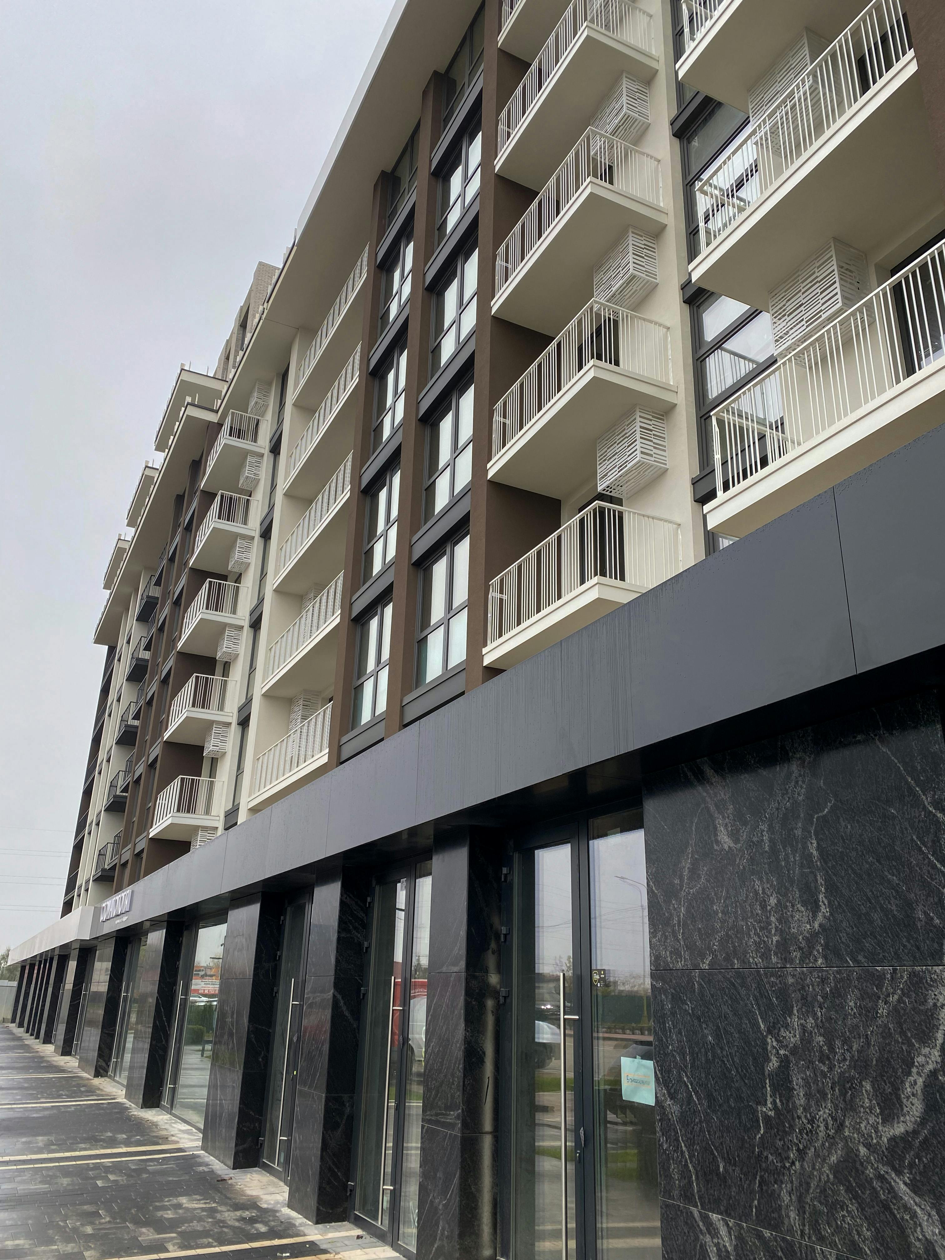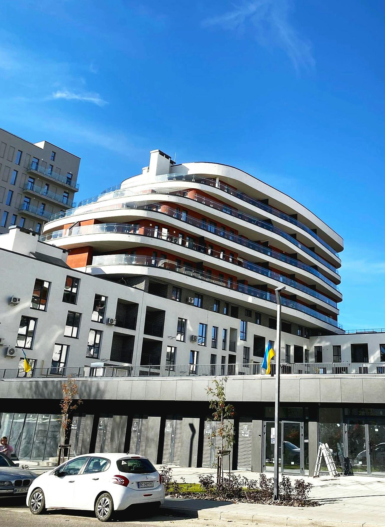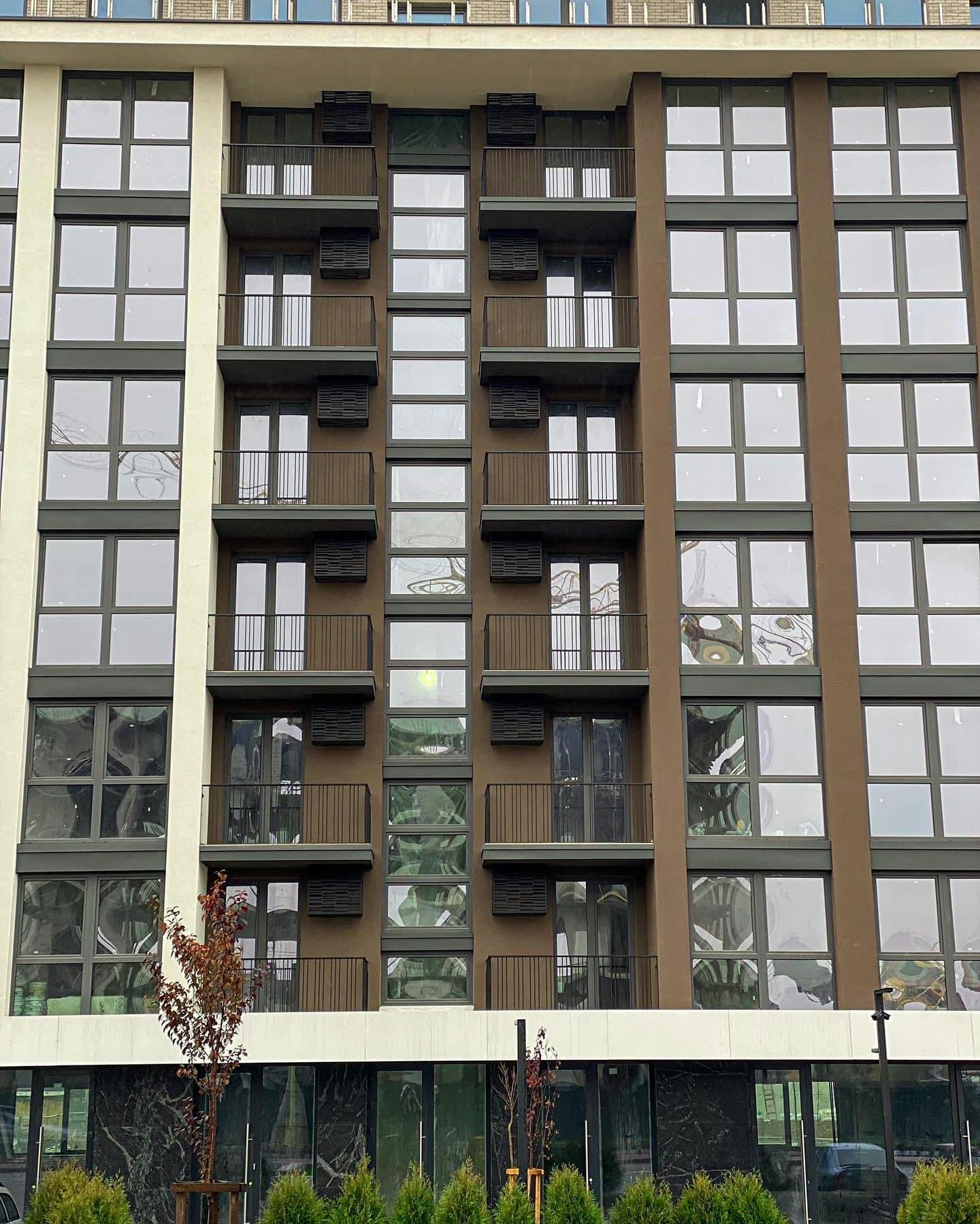 Усі віконно-дверні конструкції у цьому стильному житловому комплексі виконанні у німецькій металопластиковій профільній системі Salamander BluEvolution 73