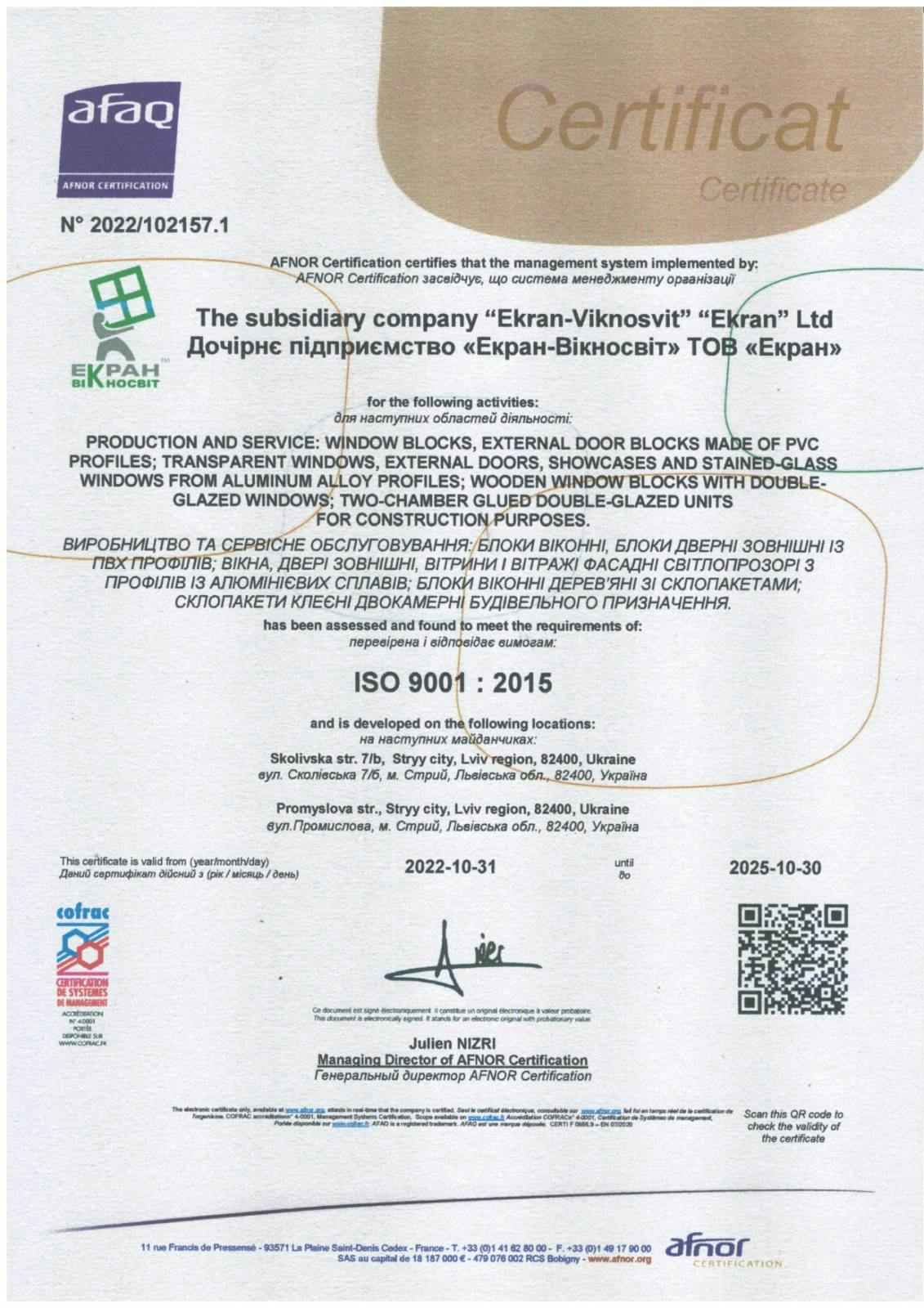 Всі вікна виготовленні у нашій брендовій профільній системі Ekran Maxima— це втілення інновацій та технічних знань в сучасних металопластикових вікнах