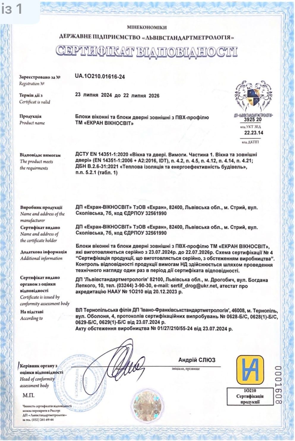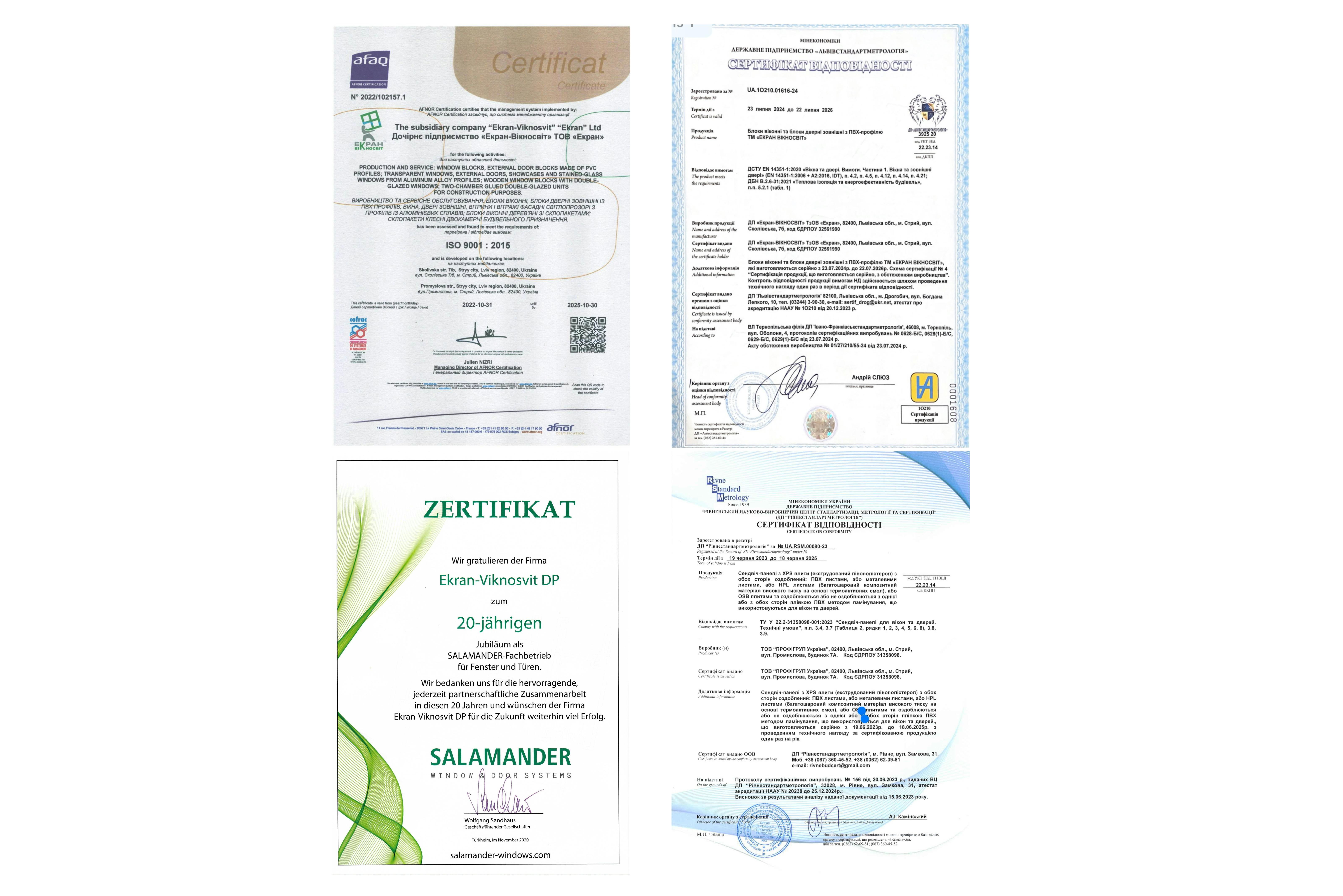 Частина віконно-дверних конструкцій виготовлена у німецькій металопластиковій профільній системі Salamander BluEvolution 73, а частина у нашій брендові системі Ekran Maxima